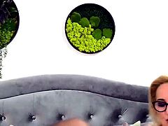 Cock pulling mature blonde squeezes dick